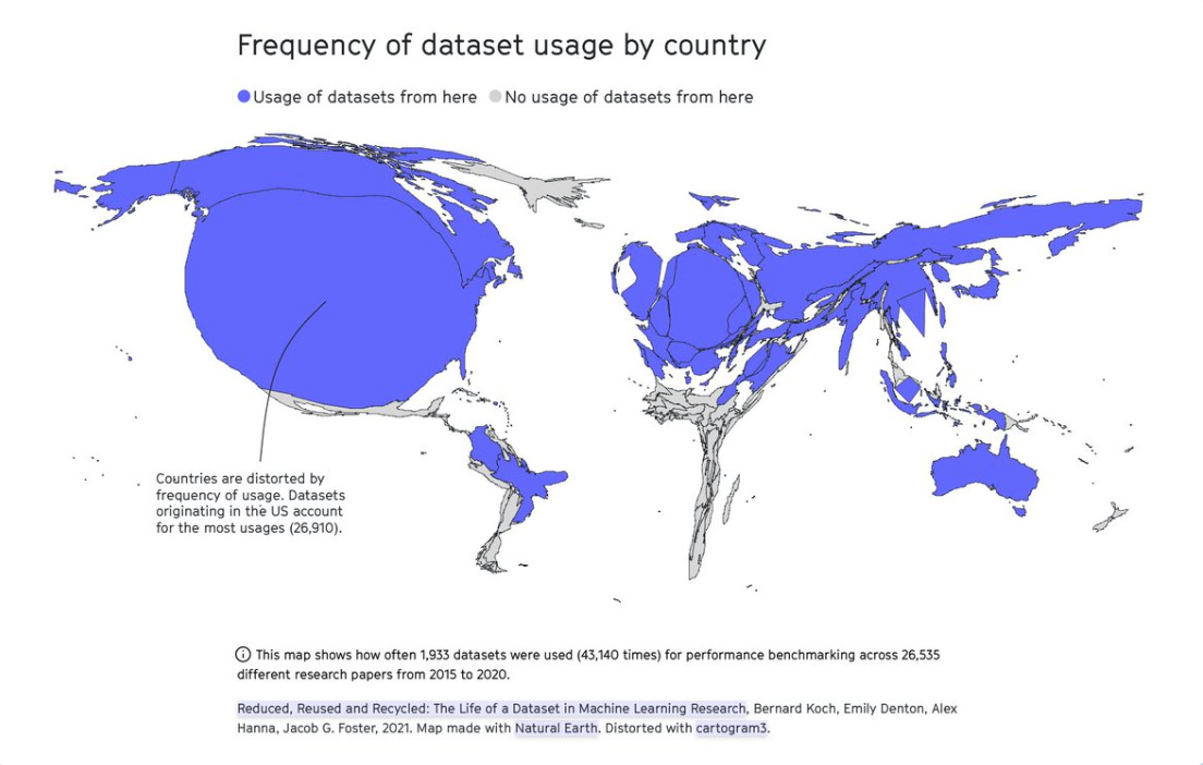 Waar geen data over bestaat, kan het model niet op trainen. AI-datasets komen overwegend uit de VS. De large language modellen zijn daardoor een weerspiegeling van de westerse cultuur, en vooral van die 15% van de wereldbevolking die Engels spreekt.
