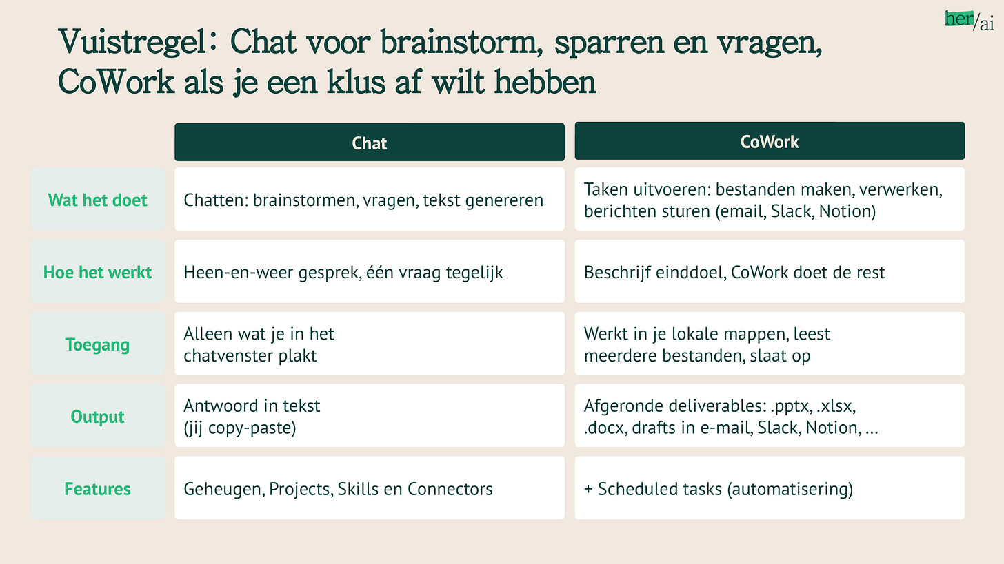 Chat vs. Cowork op een rij